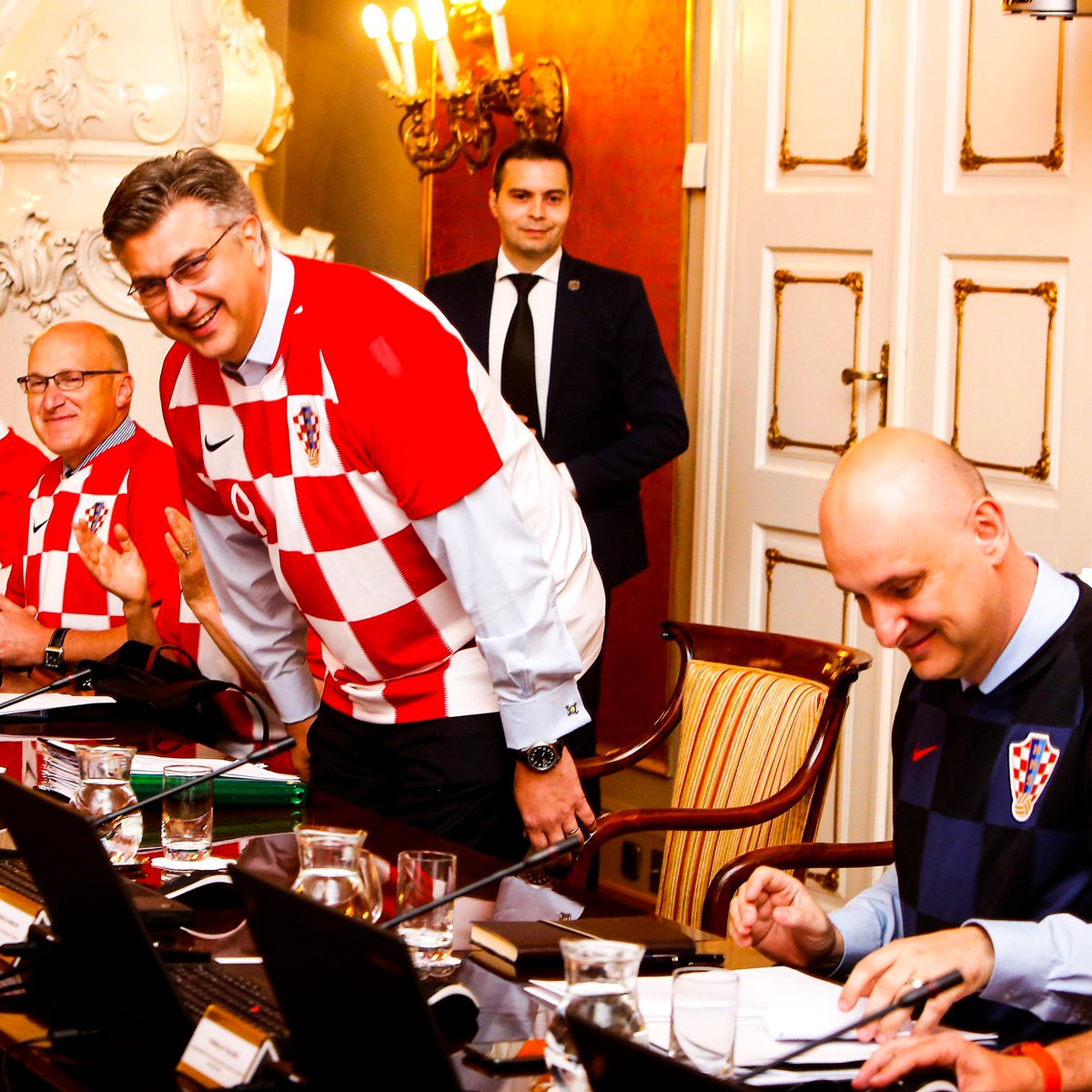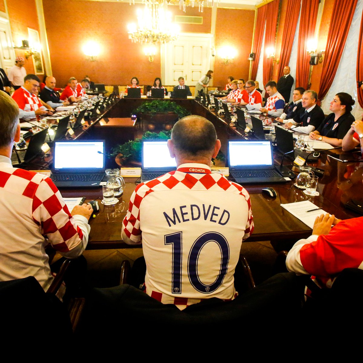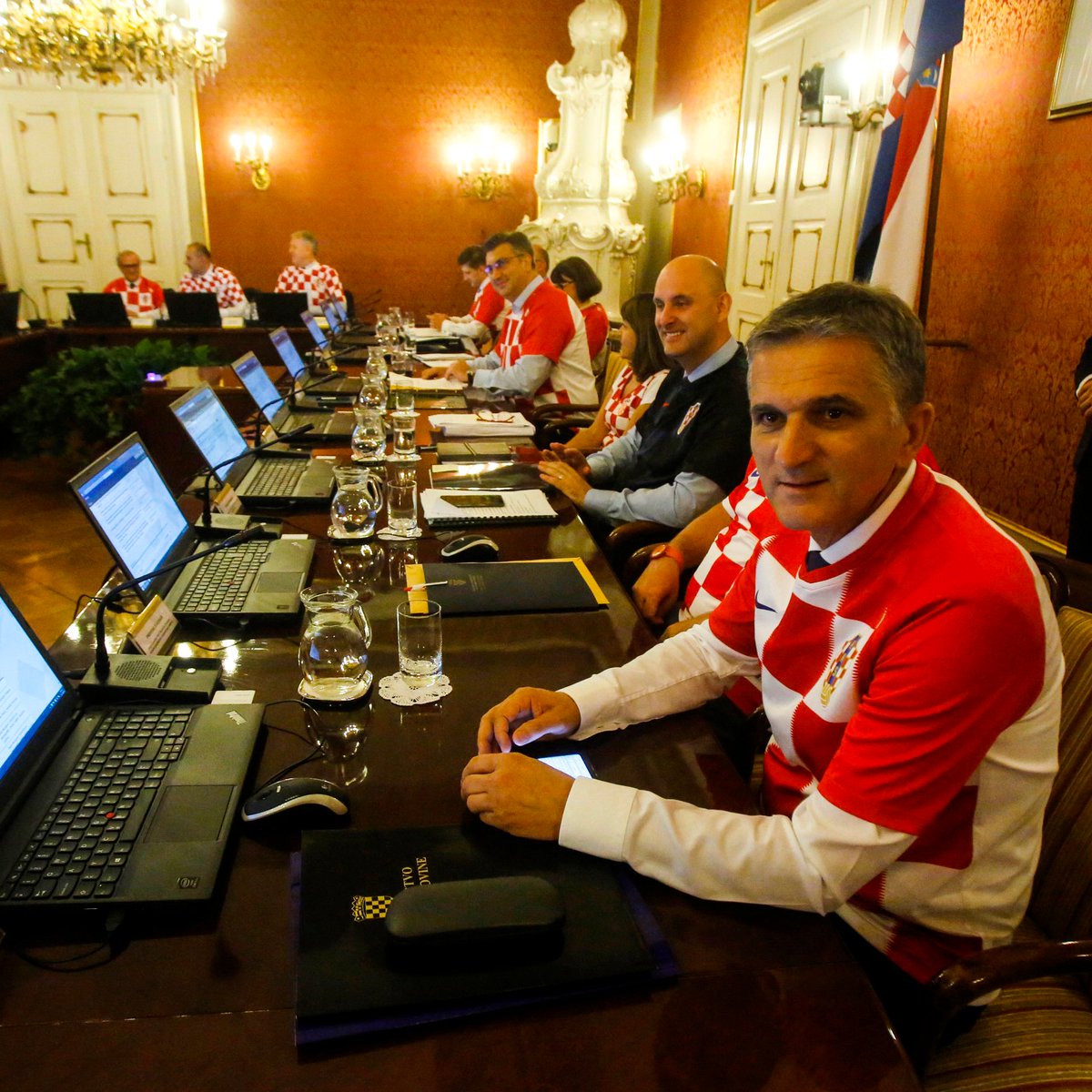 Stjórnmálamenn og konur í Króatíu mættu í vinnuna í króatíska landsliðsbúningnum í gær og sýndu sínu liði stuðning.
