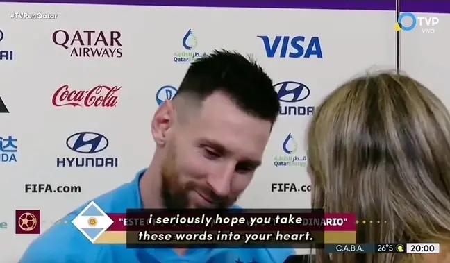 Í viðtalinu tjáði fréttakonan Messi að sama hvernig úrslitaleikurinn færi ætti hann að vita hversu mikið hann hefur gert fyrir alla argentísku þjóðina. Hún sagði kappann hafa haft áhirf á líf allra í landinu.