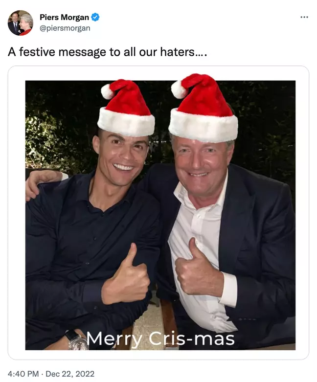 „Jólakveðja til allra sem hata okkur,“ skrifar Morgan en bæði hann og Ronaldo eru umdeildir menn en hafa náð miklum árangri á sínu sviði.