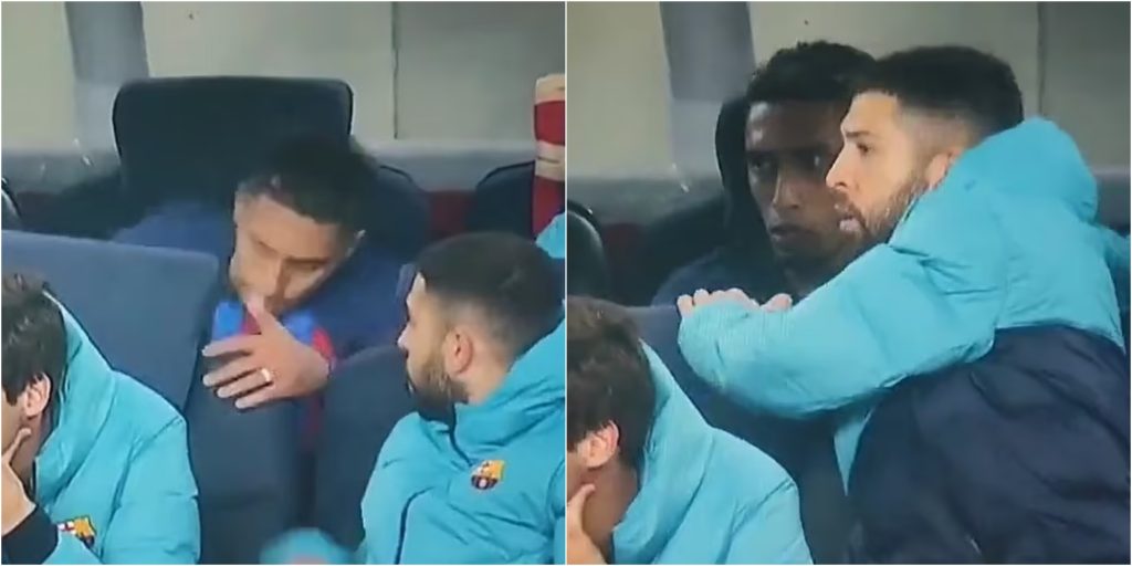 Jordi Alba reyndi að róa hann og tókst það að lokum.