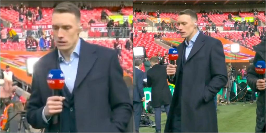 Phil Jones starfaði sem sérfræðingur fyrir Sky Sports fyrir úrslitaleik enska deildabikarsins um helgina.