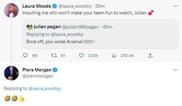 Piers Morgan er einnig þekktur stuðningsmaður Arsenal. Hann hafði virkilega gaman að þessu, eins og sjá má á svari hans hér að neðan.