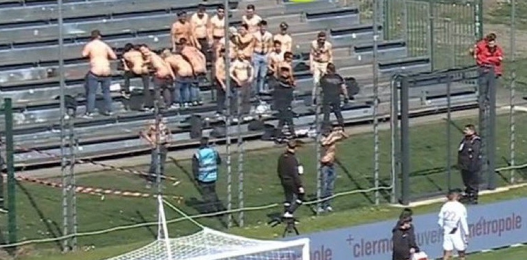 Það sem vakti mesta athygli þar voru stuðningsmenn Angers fyrir aftan markið. Þeir girtu niður um sig og settu rassinn í átt að Cham.