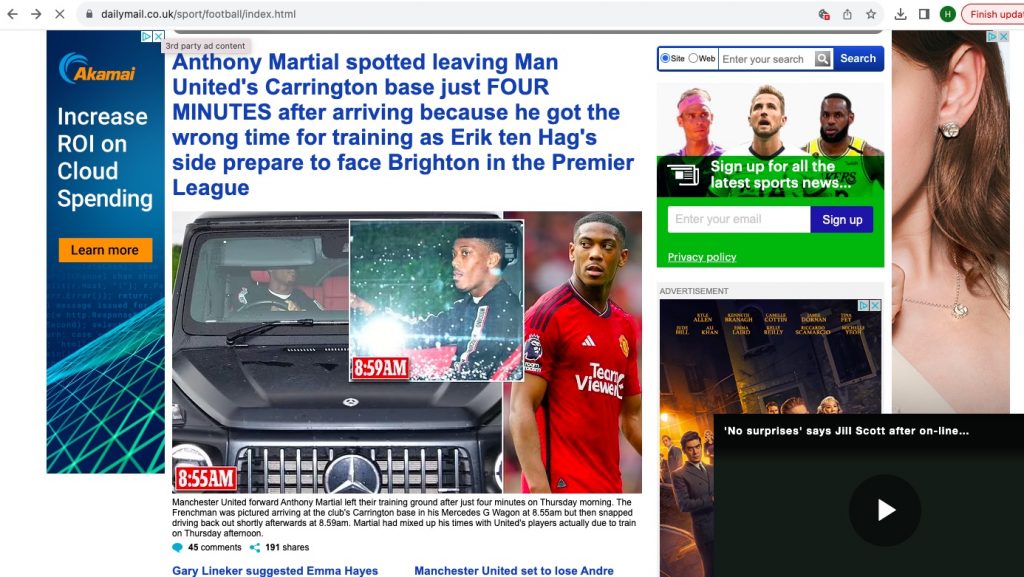 Enskir blaðamenn eru hissa á því að Anthony Martial mætti á æfingasvæði Manchester United í morgun en var ekki lengi að láta sig hverfa.