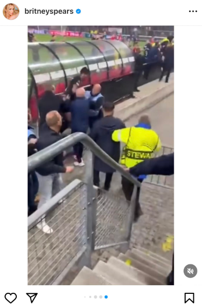 Hér að neðan má sjá færslu Britney en eins og fram kemur ofar hefur hún eytt myndbandinu af slagsmálunum á leik AZ Alkmaar og West Ham og hetjudáðum Knoll.