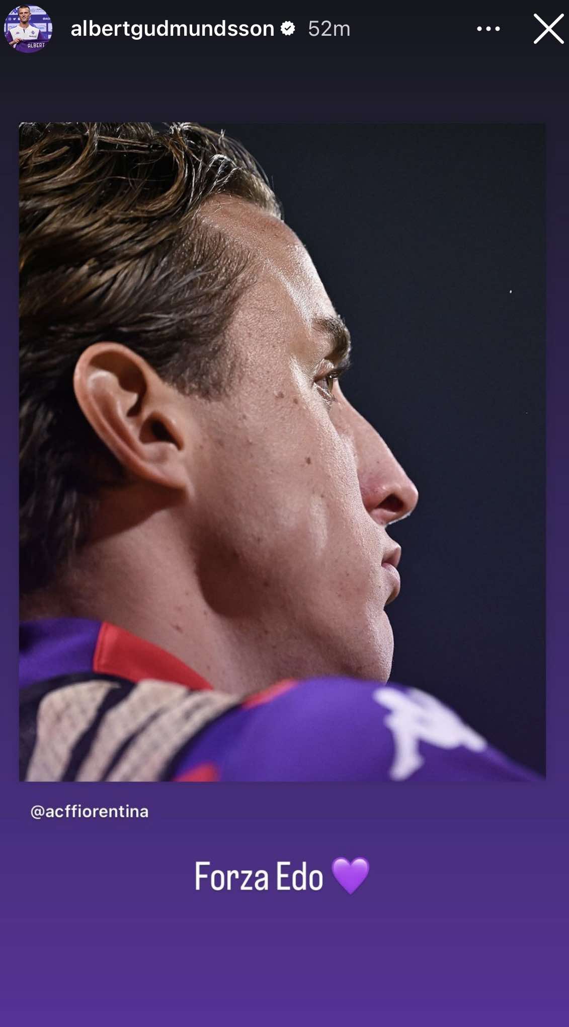 Albert Guðmundsson er liðsfélagi Bove hjá Fiorentina og var hann á varamannabekknum í gær. Hann er að snúa aftur úr meiðslum.