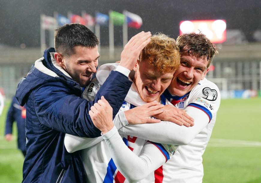 Hanus Sorensen kom Færeyingum yfir á 67. mínútu en Adam Karabec, leikmaður franska stórliðsins Lyon, jafnaði um tíu mínútum síðar. Martin Agnarsson gerði svo sigurmark heimamanna skömmu síðar.