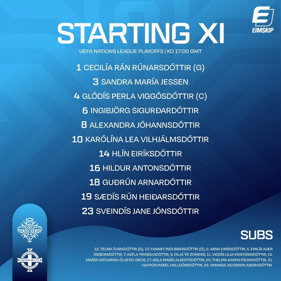 Þorsteinn Halldórsson landsliðsþjálfari gerir enga breytingu frá fyrri leiknum gegn Norður-Írlandi fyrir seinni leikinn á eftir.