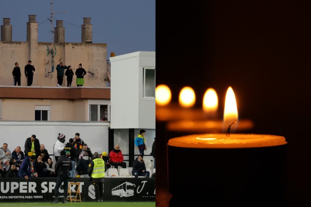 Leik Ceuta og Almeria í spænsku B-deildinni í gær var hætt eftir að áhorfandi hneig niður í stúkunni. Hann lést síðar eftir komu á sjúkrahús.