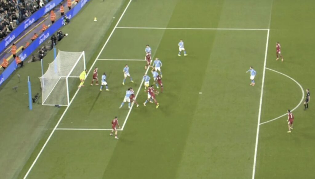 Arne Slot var bersýnilega reiður þegar mark Virgil van Dijk var dæmt af í leik Liverpool gegn Manchester City á Etihad.