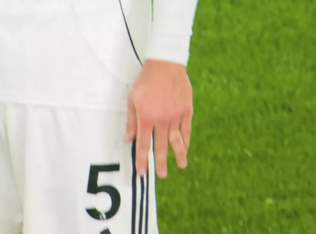 Myndavélum var fljótt vísað í aðra átt þegar ljóst var að fingur Andersen stóð í ranga átt eftir atvik í fyrri hálfleik.