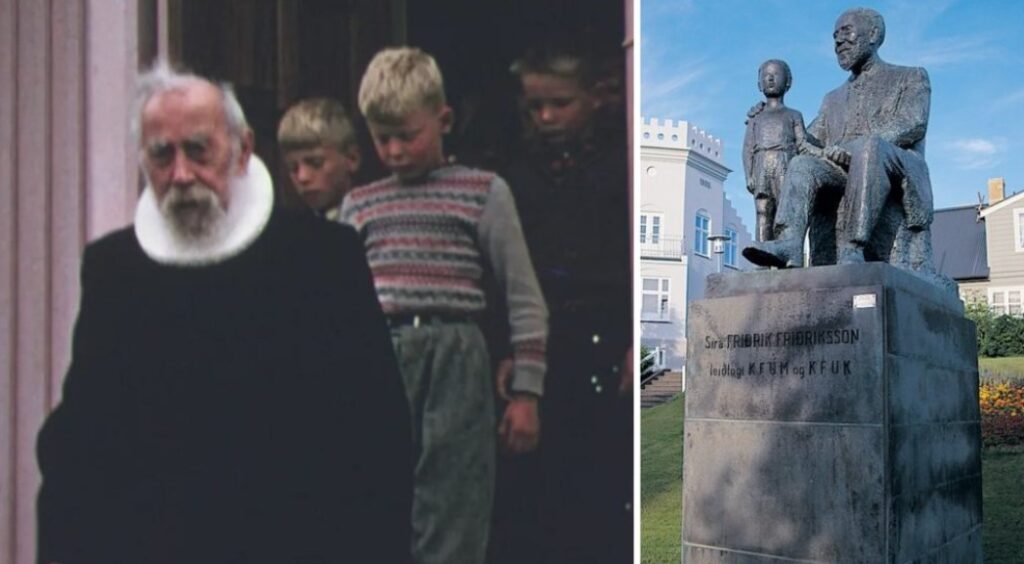 Séra Friðrik fæddist 1868 og lést 1961. Hann stofnaði meðal annars KFUM og KFUK á Íslandi og einnig íþróttafélögin Val og Hauka. Hann var áhrifamikill í íslensku samfélagi og helgaði krafta sína einna helst æskulýðsstarfi en þó fremur með drengjum en stúlkum. Í bókinni Séra Friðrik og drengirnir hans eftir Guðmund Magnússon sem kom út 2023 er því hins vegar haldið fram að Friðrik hafi brotið kynferðislega á drengjum.