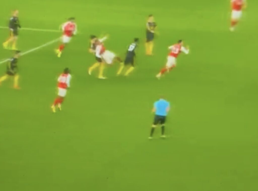 Eitt atvik úr leiknum hefur vakið mikla athygli en undir lok leiksins henti varnarmaðurinn, Gabriel, sér í fremstu línu hjá Arsenal.