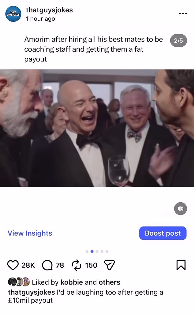 Einn þeirra er Kobbie Mainoo. Miðjumaðurinn tvítugi setti like við færslu á Instagram sem gerði grín að brottrekstri Amorim, þar sem vísað var til þess að hann fengi um 10 milljónir punda í starfslokagreiðslu.