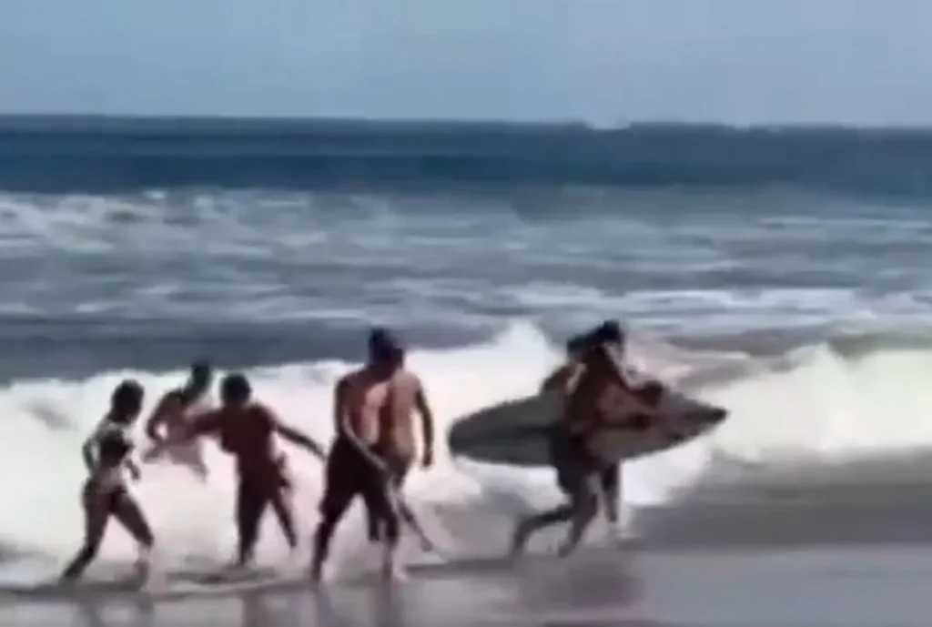 Brimbrettamenn brugðust skjótt við köllum eftir aðstoð. Á upptökum má sjá börnin halda sér í brimbretti á meðan þau eru dregin í átt að landi. Þegar hópurinn náði loks í land brutust út fagnaðarlæti frá fólki á ströndinni.