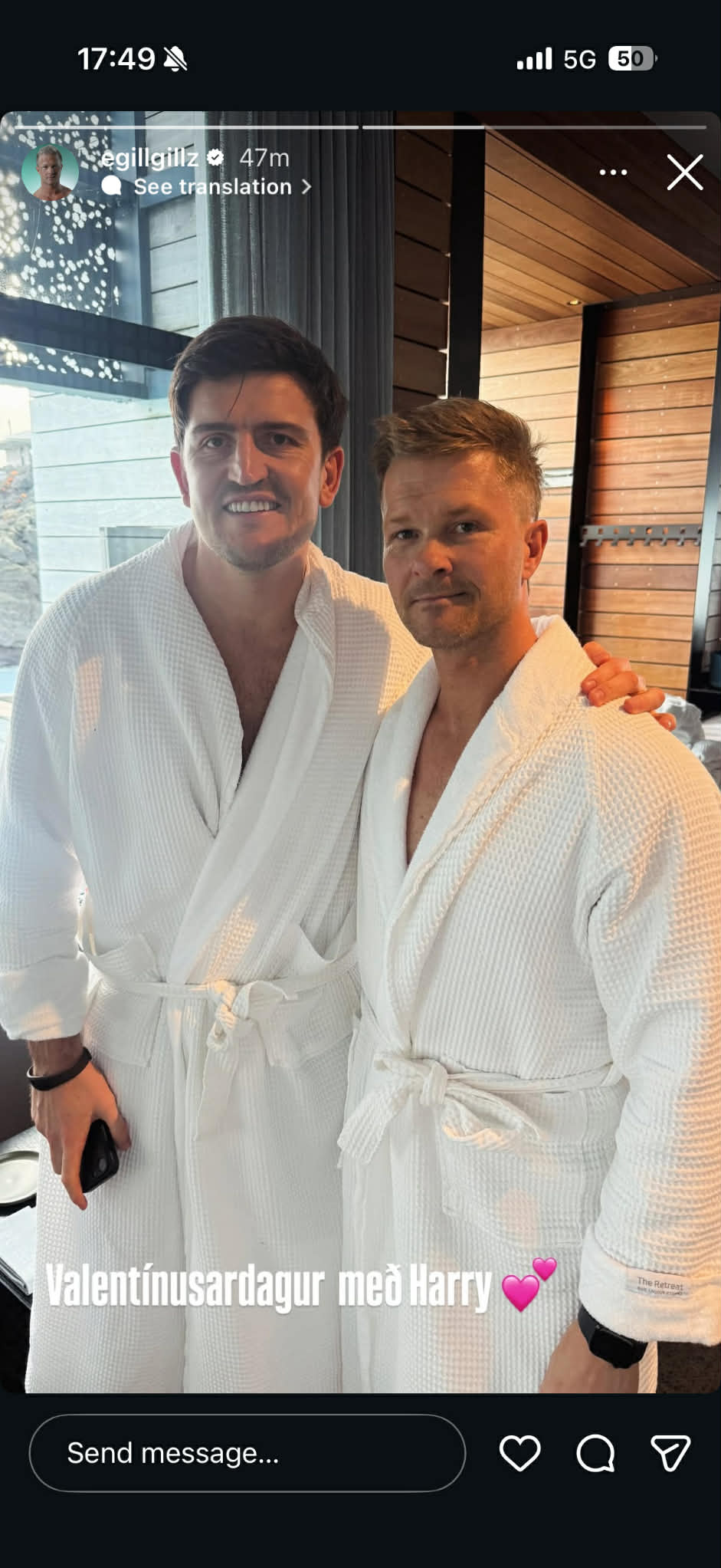 Harry Maguire leikmaður Manchester United og enska landsliðsins er staddur hér á landi og dvaldi á The Retreat Hotel hjá Bláa lóninu í gær.