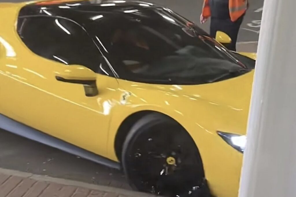 Ferrari-bíll Tonali er sagður vera um 300 þúsund punda virði og hefur atvikið vakið athygli á samfélagsmiðlum eftir að myndbandið birtist á netinu.