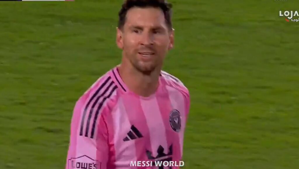 Eftir markið fagnaði Messi fyrir framan stuðningsmenn Orlando og sneri sér að varamannabekk liðsins og þóttist skrifa undir eiginhandaráritun.