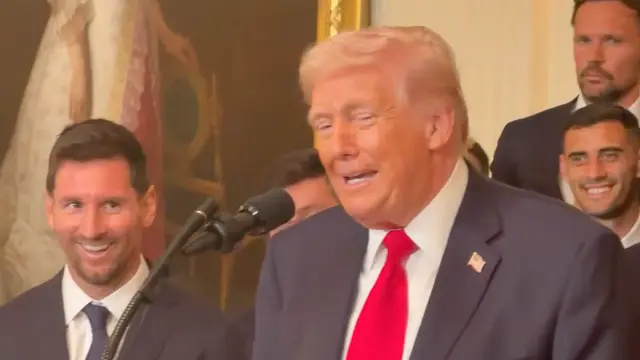 Þar var liðið heiðrað fyrir árangur sinn og hélt Trump að sjálfsögðu tölu. Þar löfsöng hann Messi en einnig Cristiano Ronaldo. Margir eru á því að þetta séu tveir bestu knattspyrnumenn sögunnar.