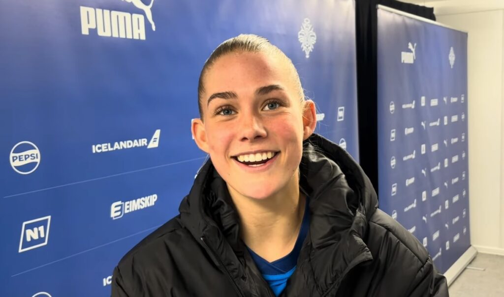 Sædís Rún Heiðarsdóttir landsliðskona var að vonum sátt með 1-0 sigur á Úkraínu í undankeppni HM í gær, sem styrkir stöðuna í riðlinum mikið.