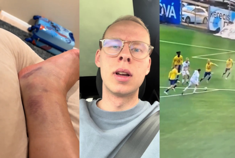 Liðin mættust í fyrstu umferð Lengjudeildarinnar um helgina og á myndbandinu sýndi Sindri hversu illa hann er farinn eftir tæklingu frá leikmanni Vestra. Brotið uppskar enga refsingu.