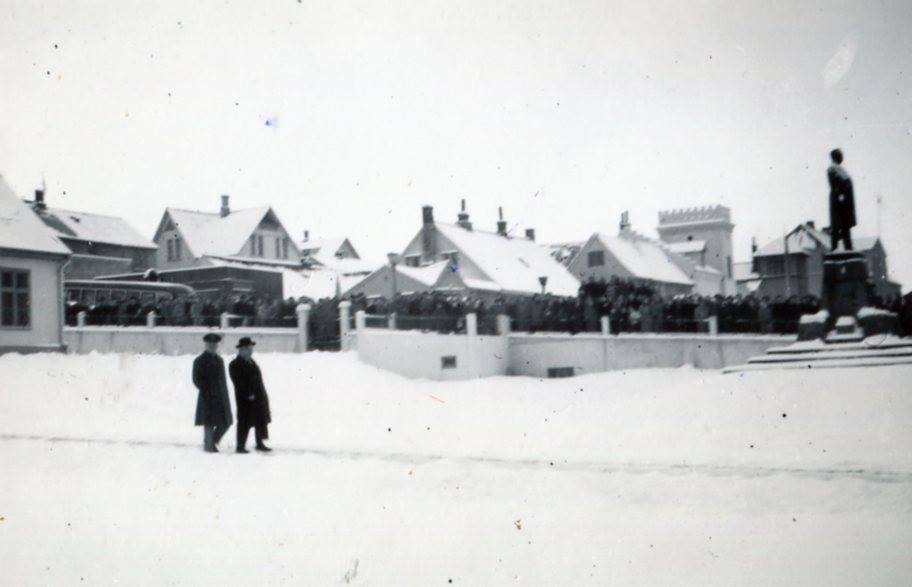 Mjög söguleg ljósmynd, tekin af Skafta Guðjónssyni. Birtist á vefnum Gamlar ljósmyndir. Vetur og mikill snjór framan við Stjórnarráðið 25. janúar 1951.
