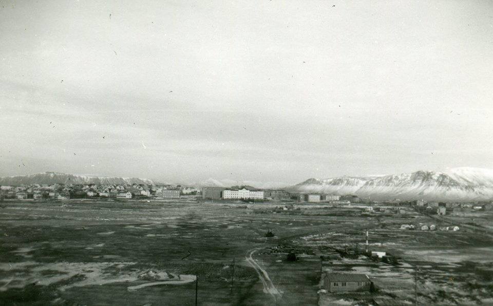 Þarna er ekki búið að leggja flugvöllinn, við sjáum hvað svæðið þar sem völlurinn virkar blautt og erfitt yfirferðar. Það getur varla hafa talist vera nein prýði.