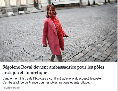 Það ber vott um að Frakkar sýna málefnum heimskautanna mikinn áhuga að Ségolene Royal hefur verið skipuð sendiherra heimskautasvæðanna, Norðurpólsins og Suðurpólsins. Royal var forsetaframbjóðandi í kosningunum 2007, tapaði þá fyrir Sarkozy. Hún hefur einnig verið umhverfisráðherra í Frakklandi – það er núorðið eitt áhrifamesta ráðuneytið þar í landi, sett til jafns og fjármála- og utanríkisráðuneyti.