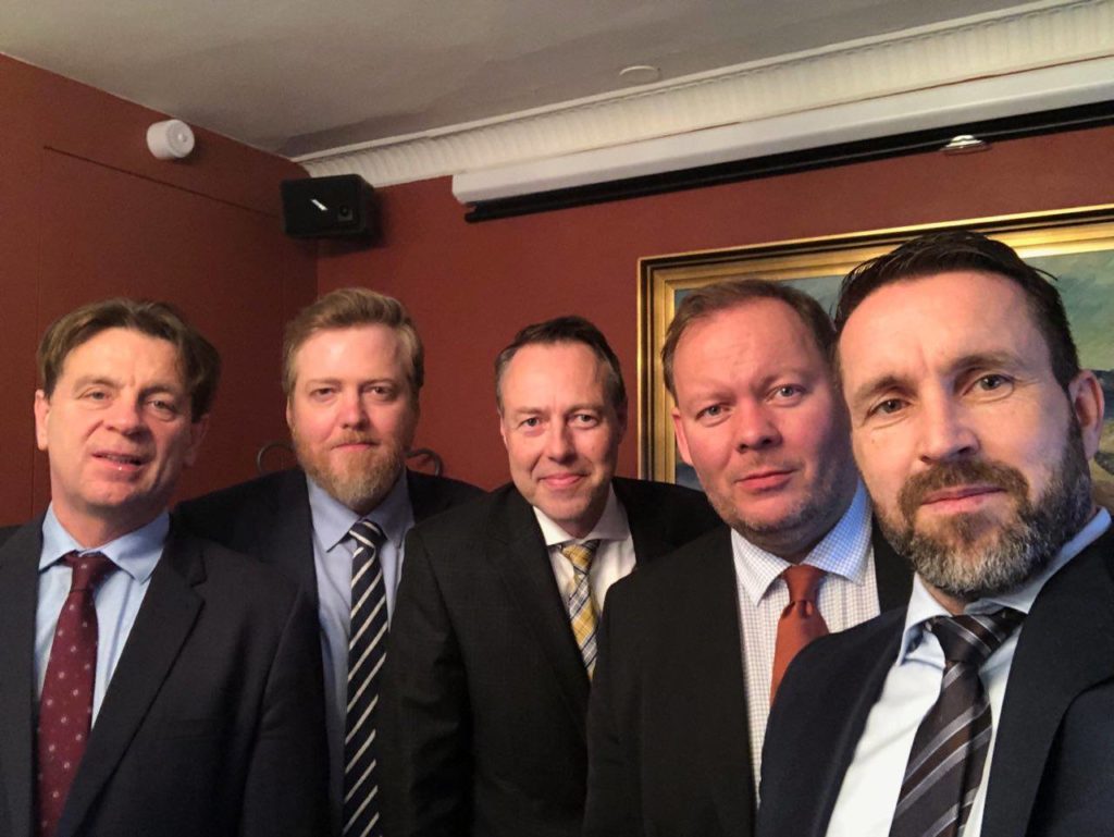 Nokkrir þingmenn Miðflokksins voru enn á mælendaskrá þegar umræðum var frestað í morgun, en fimm þeirra sátu fyrir á mynd í morgun og birtu á samfélagsmiðlum, þreytulegir nokkuð.