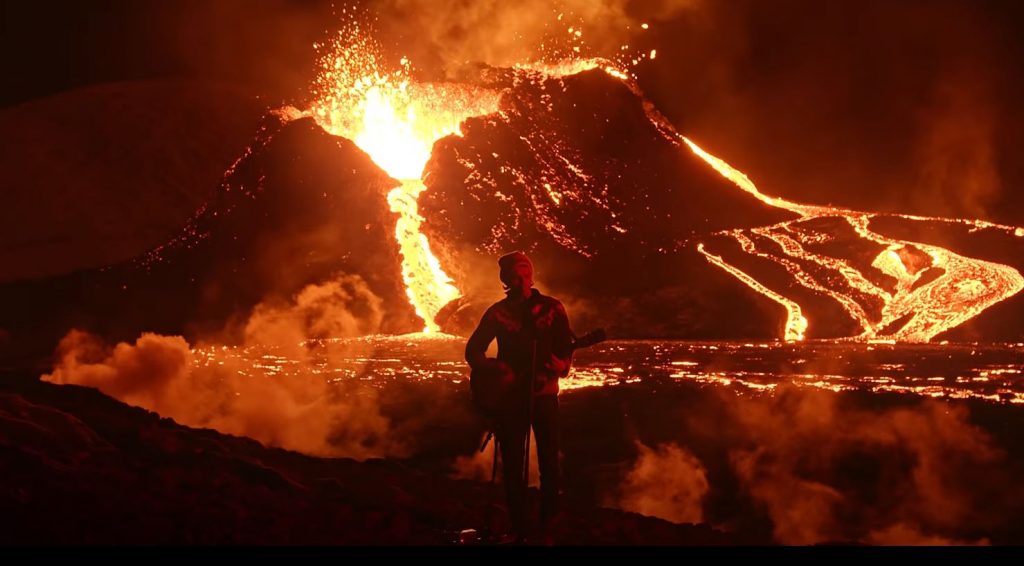 Fátt er jafn mikið myndað um þessar mundir og eldgosið í hlíðum Fagradalsfjalls en nú virðast Kaleo hafa tekið hlutina skrefi lengra og tekið þar upp tónlistarmynd við lag sitt „Skinny.“