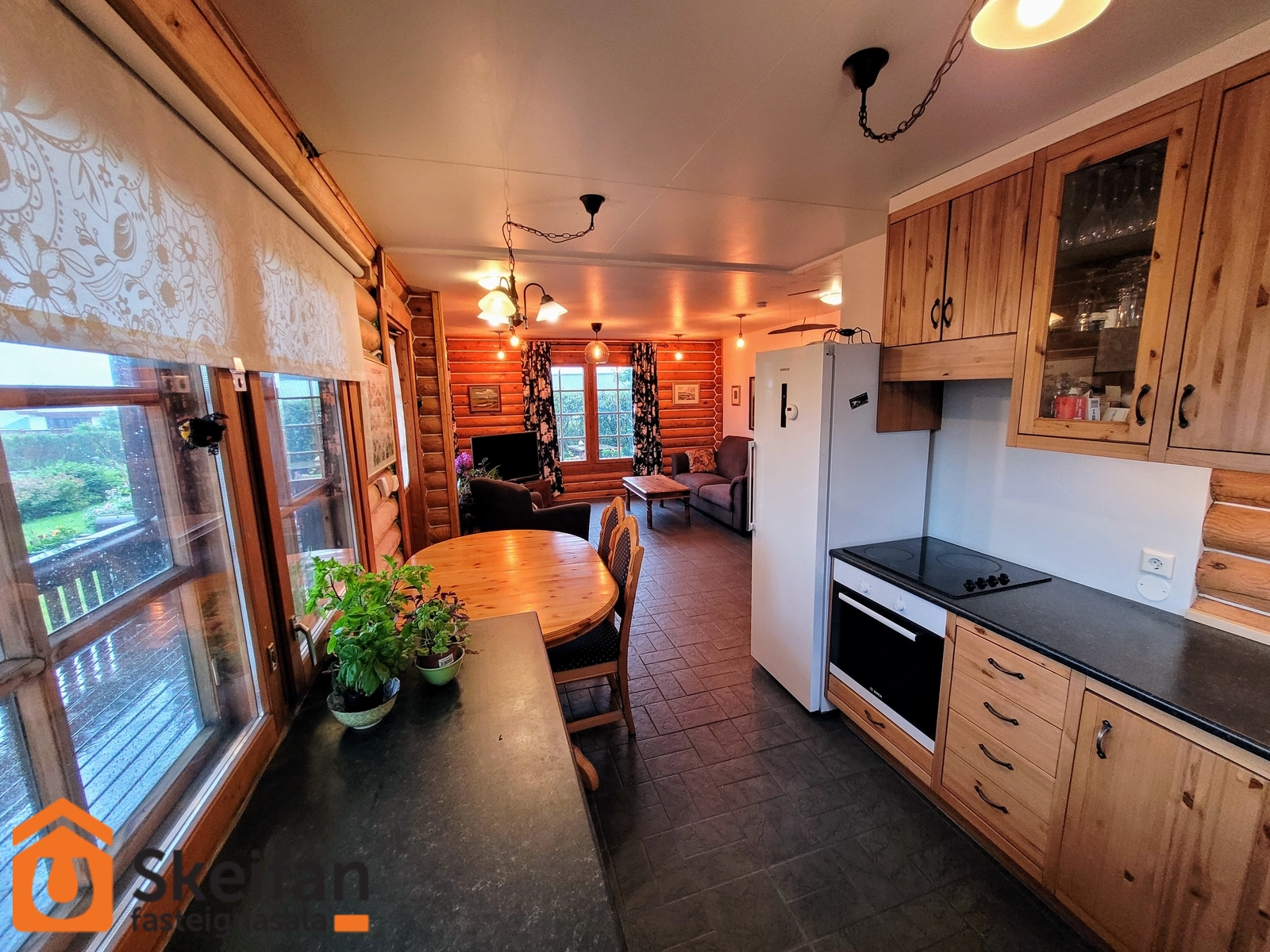 Á Kjalarnesi er nú til sölu gullfallegt finnst bjálkahús. Húsið er ævintýralega óhefðbundið og minnir helst á sumarhús eða risa ævintýrakofa beint af síðum sögubókar.