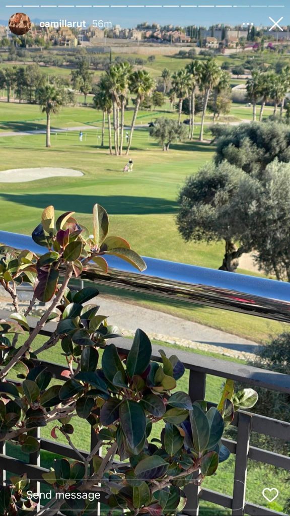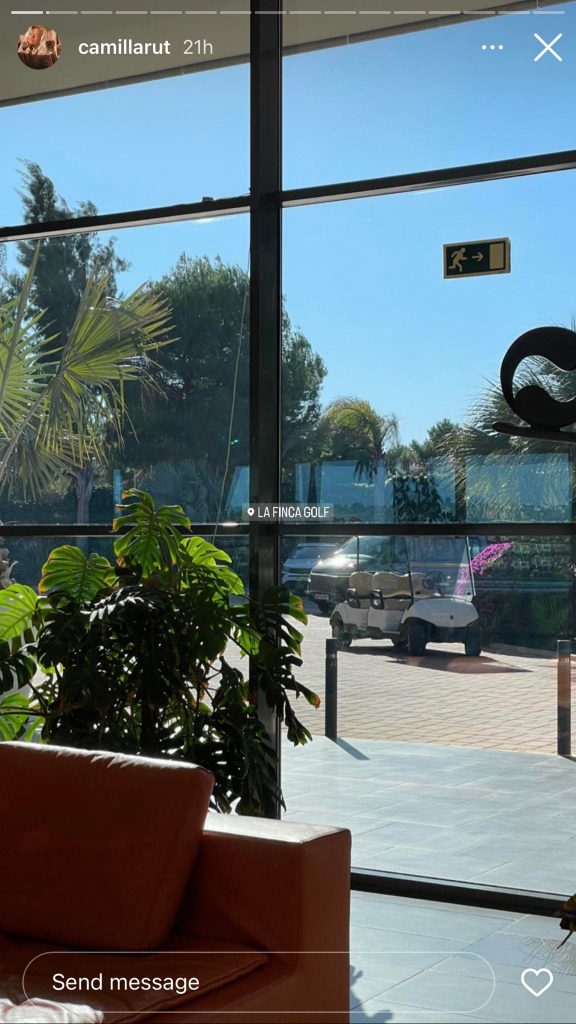 Áhrifavaldurinn hefur birt nokkrar myndir á Instagram frá ferðinni. Þau spiluðu á La Finca golfvellinum í gær og voru mætt snemma í morgun aftur á völlinn ásamt ömmu Camillu.