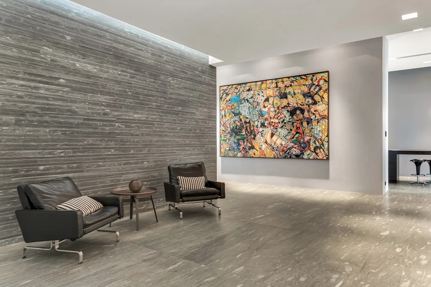 Íbúðirnar eru á tveimur efstu hæðunum. Sú á neðri hæð sem er stærri er með fimm svefnherbergi sem hvert og eitt er með sérbaðherbergi, eldhús og stofu í einu rými, og svalir með frábæru útsýni. Sú á efri hæð er einnig með fimm svefnherbergi, hvert og eitt er með sérbaðherbergi, eldhús og stofu eru í einu rými, og svalir. Hægt er að leigja eitt herbergi til viðbótar á efri hæðinni, sem er með sérbaðherbergi eins og hin, en einnig með sér inngang fram á stigaganginn.