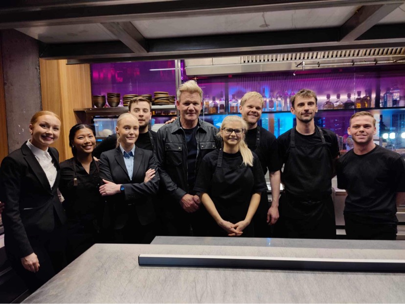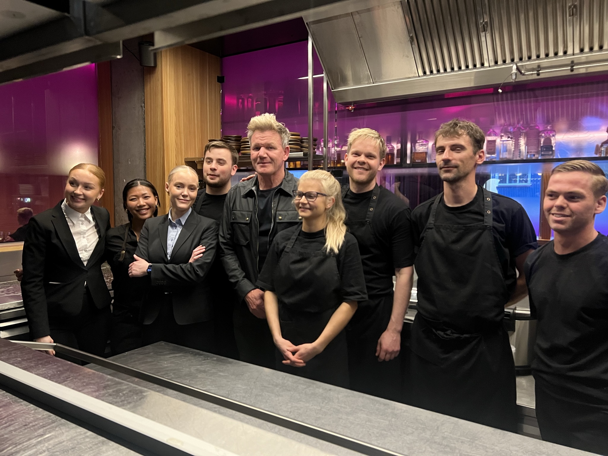 Ramsay stillti sér upp með starfsfólkinu