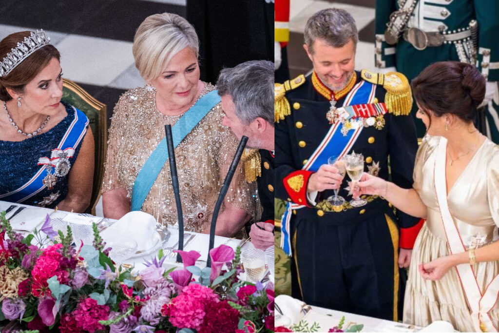 Friðrik og Þórdís sátu hlið við hlið og virtist fara vel á með þeim þrátt fyrir aldursmuninn. Friðrik er 56 ára en Þórdís 20 árum yngri. Friðrik brosti breitt og skálaði við Þórdísi. Einnig hallaði hann sér upp að henni og hvíslaði í eyrað. Drottningin Mary Donaldson sat annars staðar við borðið og fylgdist gröm með.