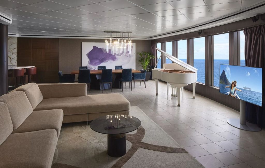 Bandaríska skipafélagið Celebrity rekur 3 þúsund farþega skip sem heitir Celebrity Edge og siglir mikið um Karíbahafið. Þar má finna svítu sem kallast Iconic Suite. Svítan er 239 fermetrar að stærð með tveimur svefnherbergjum og tveimur baðherbergjum.