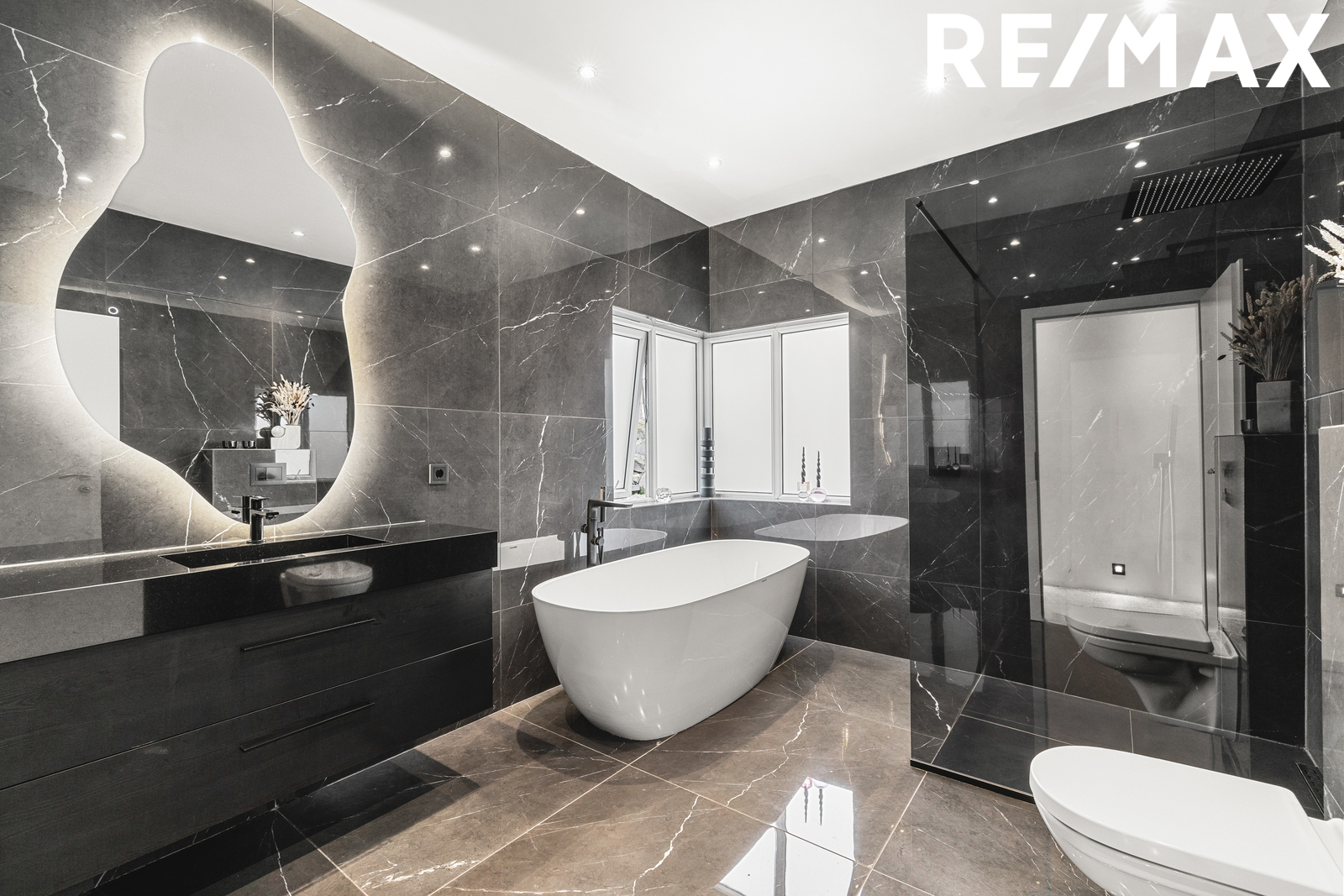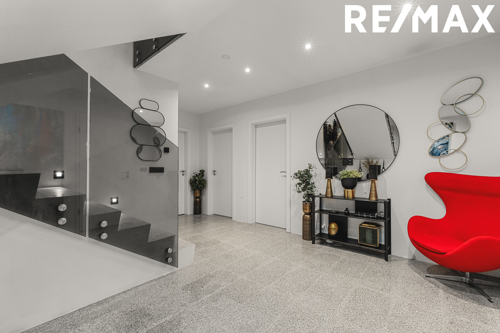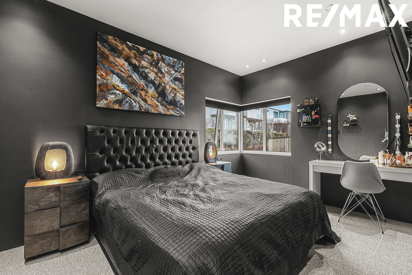 Húsið skiptist í hjónaherbergi með fataherbergi, fjögur rúmgóð barnaherbergi og fallegt baðherbergi með sturtu og frístandandi baðkari, þvottahús, stofu, skrifstofu, borðstofu og eldhús í opnu alrými, anddyri, gestasalerni og innbyggðan bílskúr. Verönd með skjólveggjum þar sem gert er ráð fyrir heitum potti, svalir frá borðstofu. Auka íbúð með sér inngangi á neðri hæð með tveimur svefnherbergjum, baðherbergi og samliggjandi eldhúsi og stofu.
