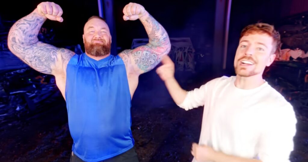 Mr. Beast er vinsælasti samfélagsmiðlasmiður heims en myndbönd hans, sem verða sífellt mikilfenglegri, eru með framleiðslukostnað á við stór Hollywood-verkefni og ná ótrúlegri útbreiðslu. Hið nýja myndband, þar sem Hafþór Júlíus stígur á stokk, er til að mynda með um 23 milljónir áhorfa á aðeins 18 klukkustundum.
