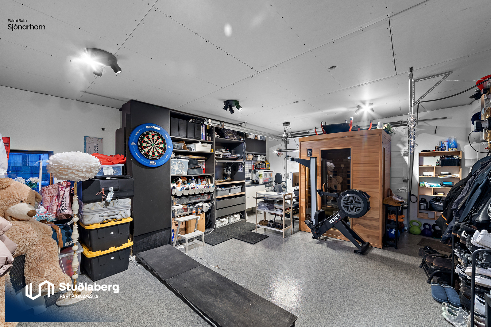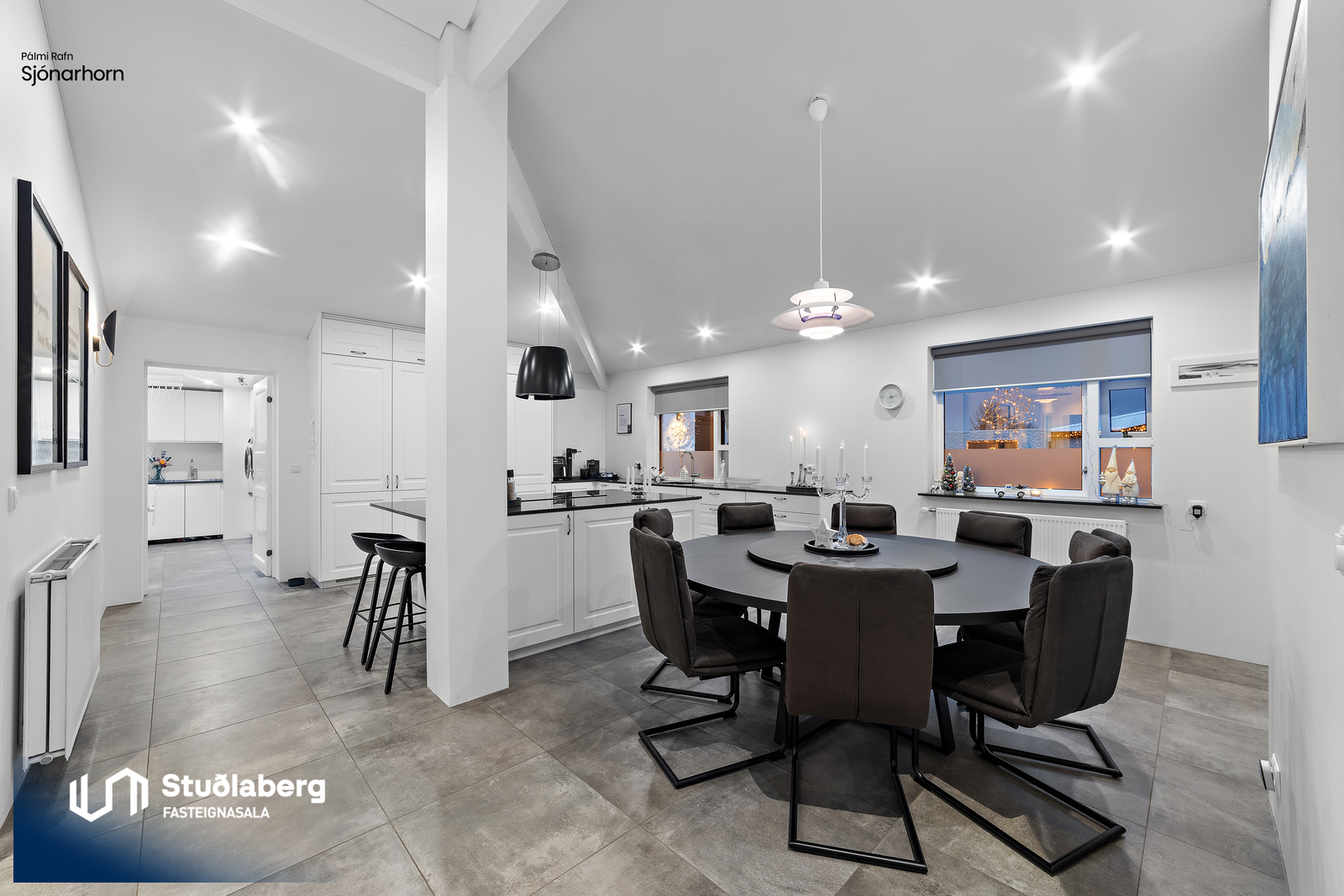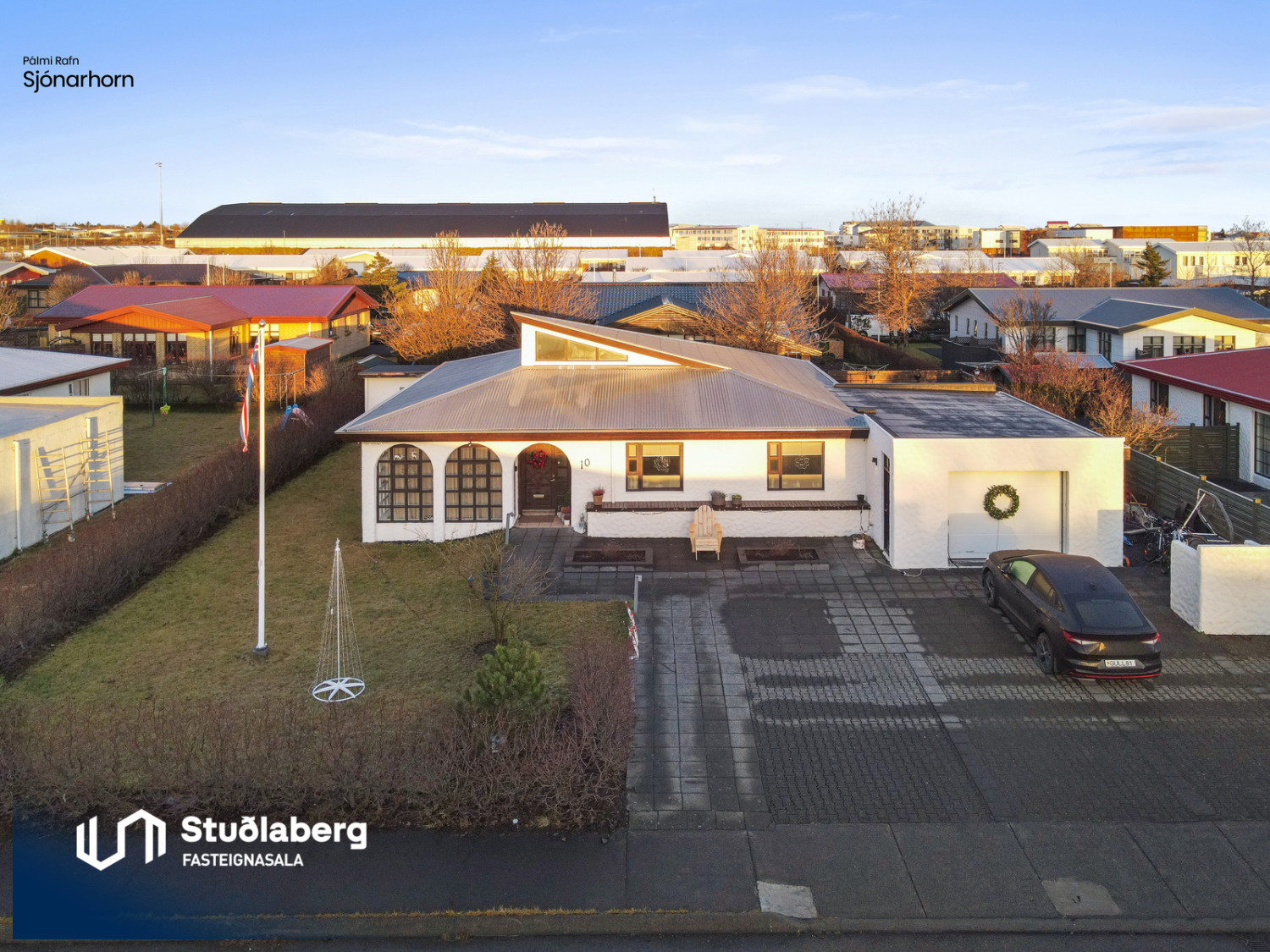 Húsið er 212,1 fm, þar af bílskúr 35 fm, byggt árið 1990.