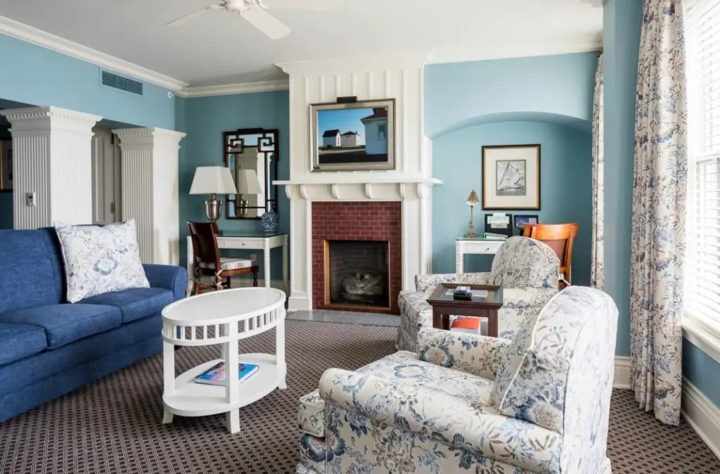 Hótelið er í viktoríönskum stíl, þekkt fyrir byggingarlist og einkennandi gula klæðningu, og býður upp á 49 herbergi og 23 sérsvítur. Herbergin eru með sérsmíðuðum viðarhúsgögnum og listaverkum frá fyrri tíð frá Nýja-Englandi, en eru nútímaleg með þráðlausu interneti, þjóni á gólfinu og flatskjásjónvörpum. Svíturnar eru með stórri stofu með arinn úr strandsteini og einkaverönd með útsýni yfir Watch Hill Village.
