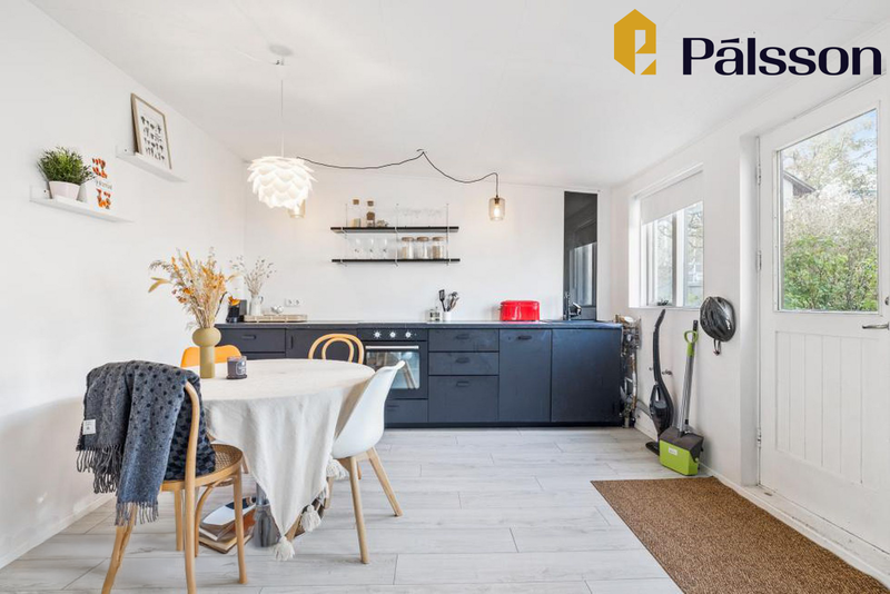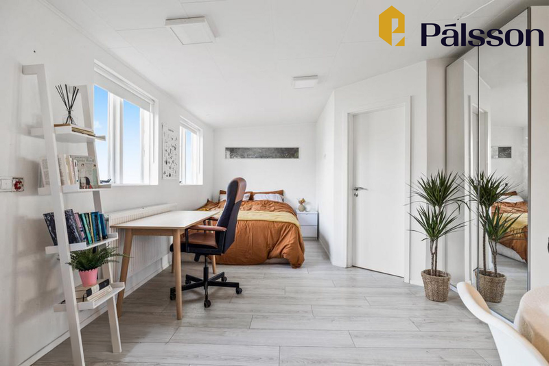 Bílskúrinn er 32m og var uppgerður sem stúdíóíbúð árið 2019. Þar er opið alrými með eldhúsi, stofurými og svefnaðstöðu, auk baðherbergis.