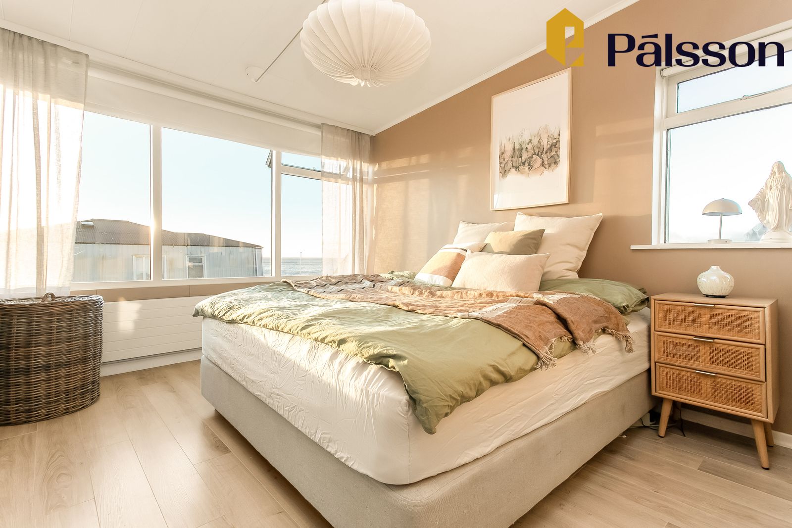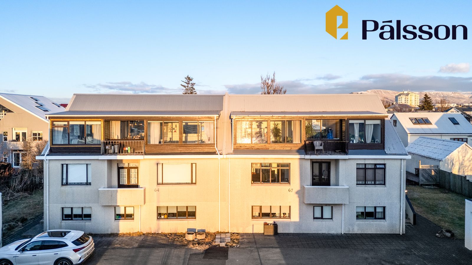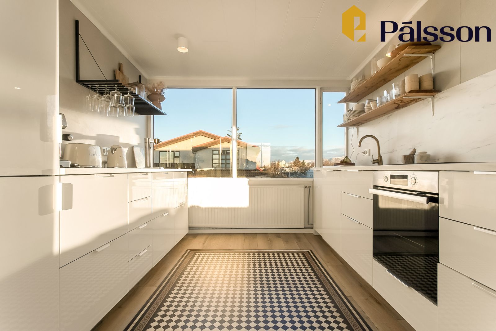 Íbúðin er 115 fm íbúð á efstu hæð í þríbýlishúsi byggt árið 1949.
