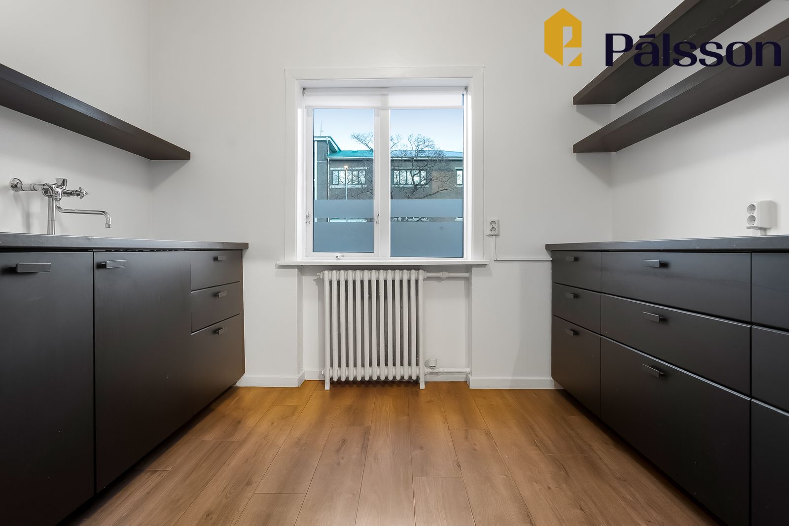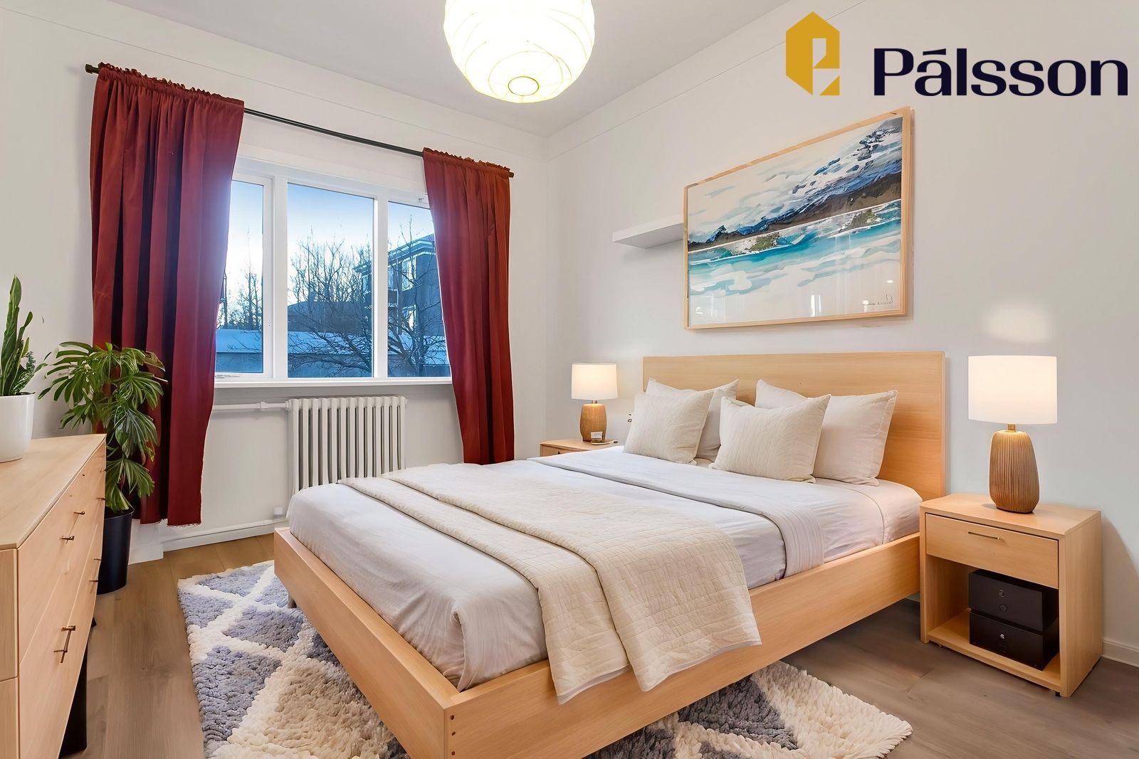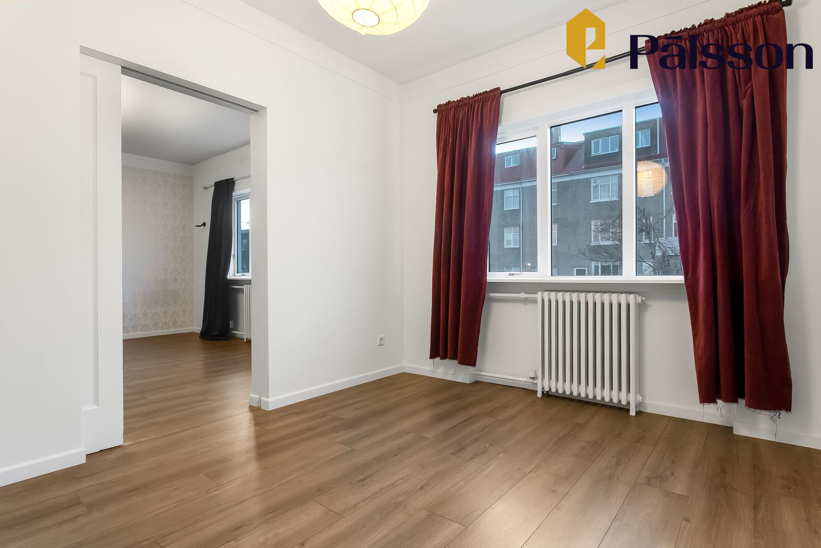 Íbúðin er 53,4 fm tveggja herbergja íbúð á fyrstu hæð í húsi sem byggt var árið 1937.