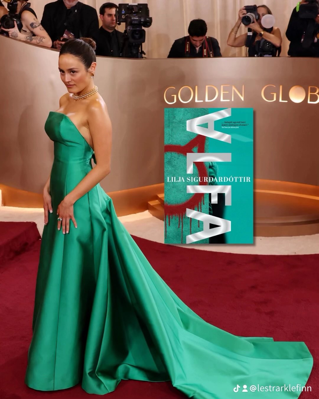 Lestrarklefinn brá á leik með myndir af stjörnunum á Golden Globes verðlaunahátíðinni sem fór fram á sunnudag og tók bækur úr jólabókaflóðinu sem voru í stíl við fatnað stjarnanna.