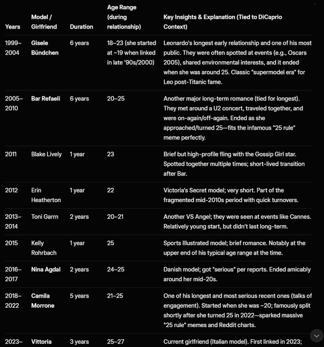 Leo hefur eins og áður var nefnt það orð á sér að segja kærustum sínum upp þegar þær ná 25 ára aldri. Einn gárunganna minnir á það í athugasemd þegar hann skrifar: „Vittoria hlýtur að hafa vaknað hvern dag síðan hún varð 26 ára og hugsað: „Í dag er dagurinn.““ Hún er 27 ára og því elsta konan sem Leo hefur verið í sambandi með.