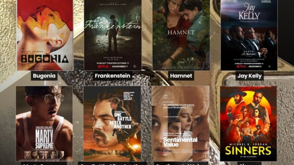 Í flokki kvikmynda er Sinners með flestar tilnefningar, 17 talsins, einni færri en met Barbie frá árinu 2024. Leikararnir Michael B. Jordan, Wunmi Mosaku og Miles Caton eru tilnefndir til verðlauna fyrir besta leikara í aðalhlutverki, bestu leikkonu í aukahlutverki og besta unga leikara/leikkonu. Ryan Coogler fær tilnefningu sem besti leikstjóri og besta frumsamda handrit, og myndin hlaut einnig verðlaun fyrir besta leikaraval og leikhóp, bestu kvikmyndatöku, bestu framleiðsluhönnun, bestu klippingu, bestu búningahönnun, besta hár og förðun, bestu sjónrænu áhrifin, bestu brelluhönnun, besta lag, bestu tónlistina og besta hljóð. One Battle After Another fylgir næst með 14 tilnefningar.