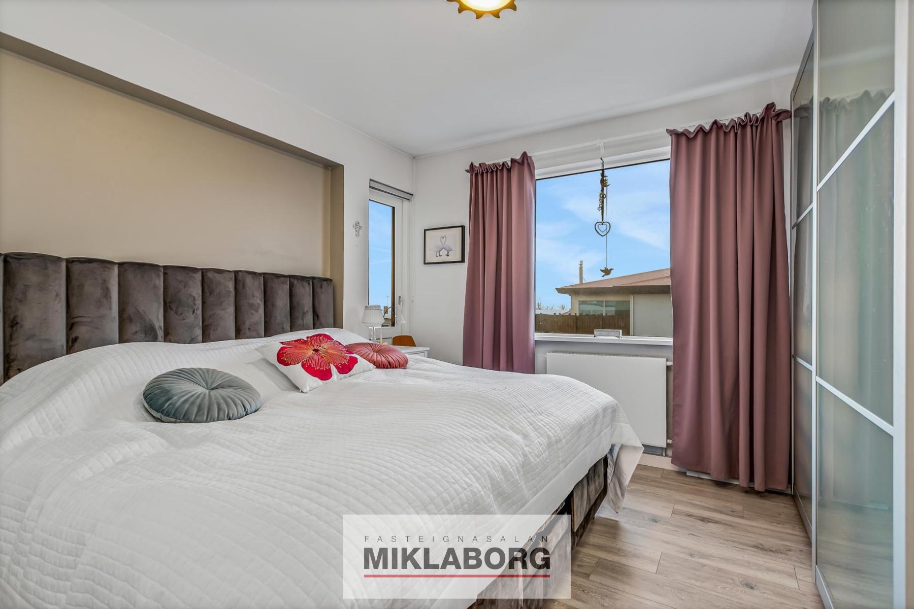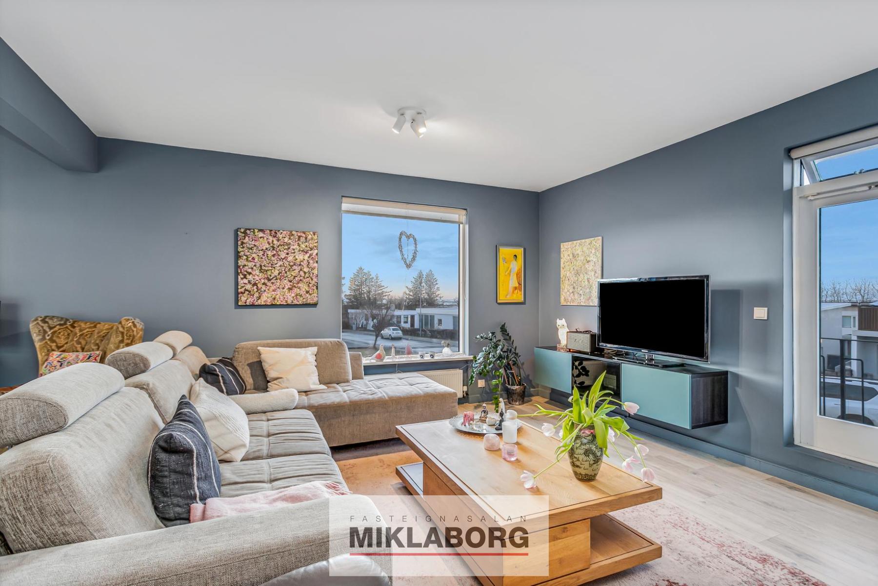 Íbúðin er 156,5 fm sérhæð á fyrstu hæð með sérinngangi, ásamt bílskúr, í húsi sem byggt var 1961. Íbúðin skiptist í forstofu, eldhús, stofu/borðstofum þrjú svefnherbergi og baðherbergi. Auðvelt er að bæta við fjórða svefnherbergi inn af stofu.