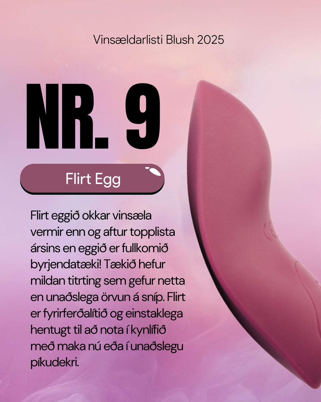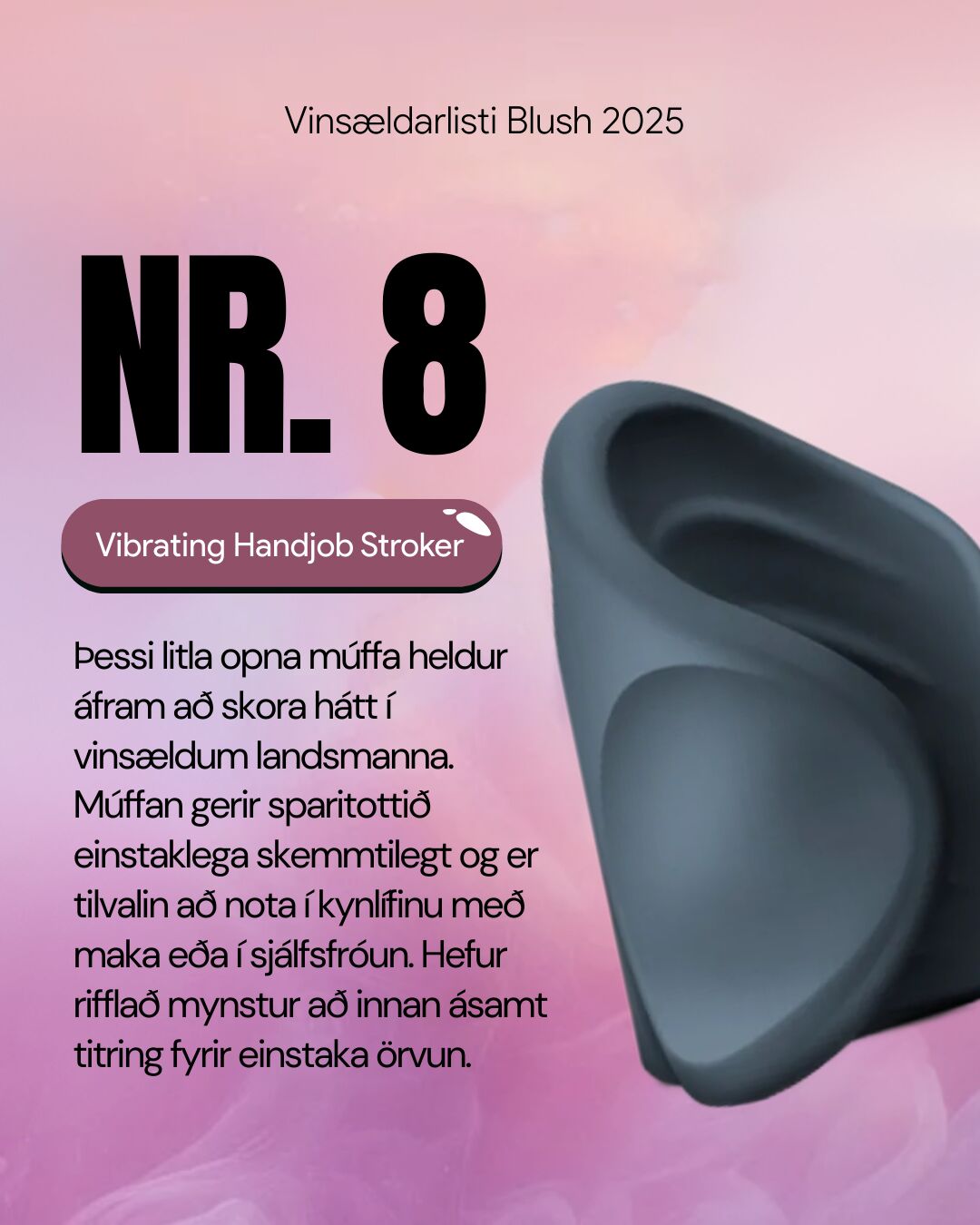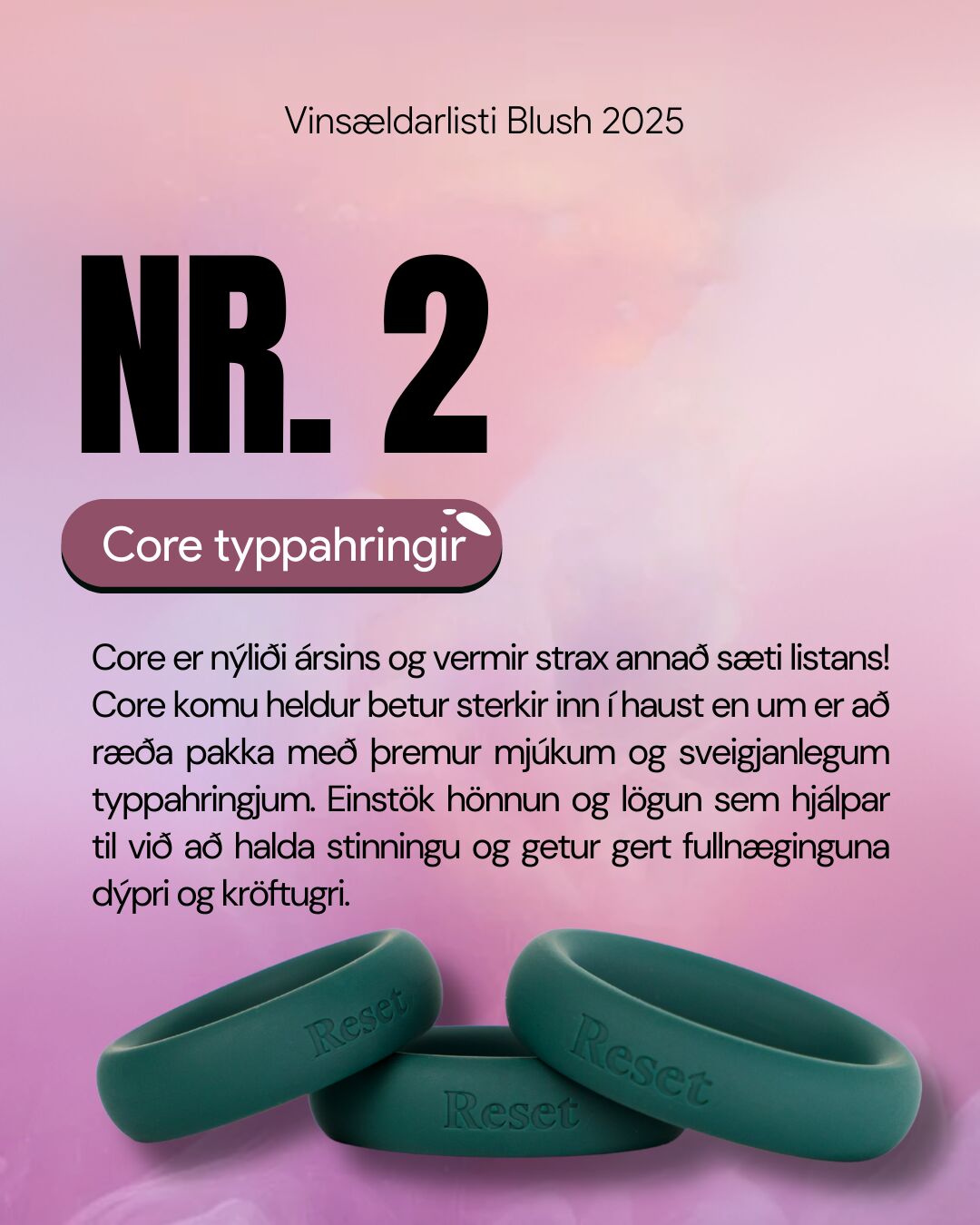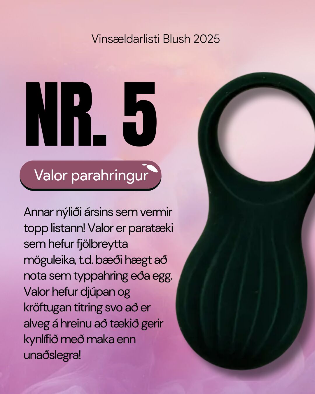 „Gaman að segja frá því þá rötuðu tvær nýjar vörur á topplista ársins, Core typpahringir og Valor parahringur frá Reset. Annað eftirtektarvert er að Morgan Strapon var ein af topp 10 vinsælustu vörum ársins í flokknum fyrir rass, landsmenn augljóslega ófeimnir við að prófa sig áfram í pegginu á síðasta ári,“ segir Fanney Skúladóttir, markaðsstjóri Blush.