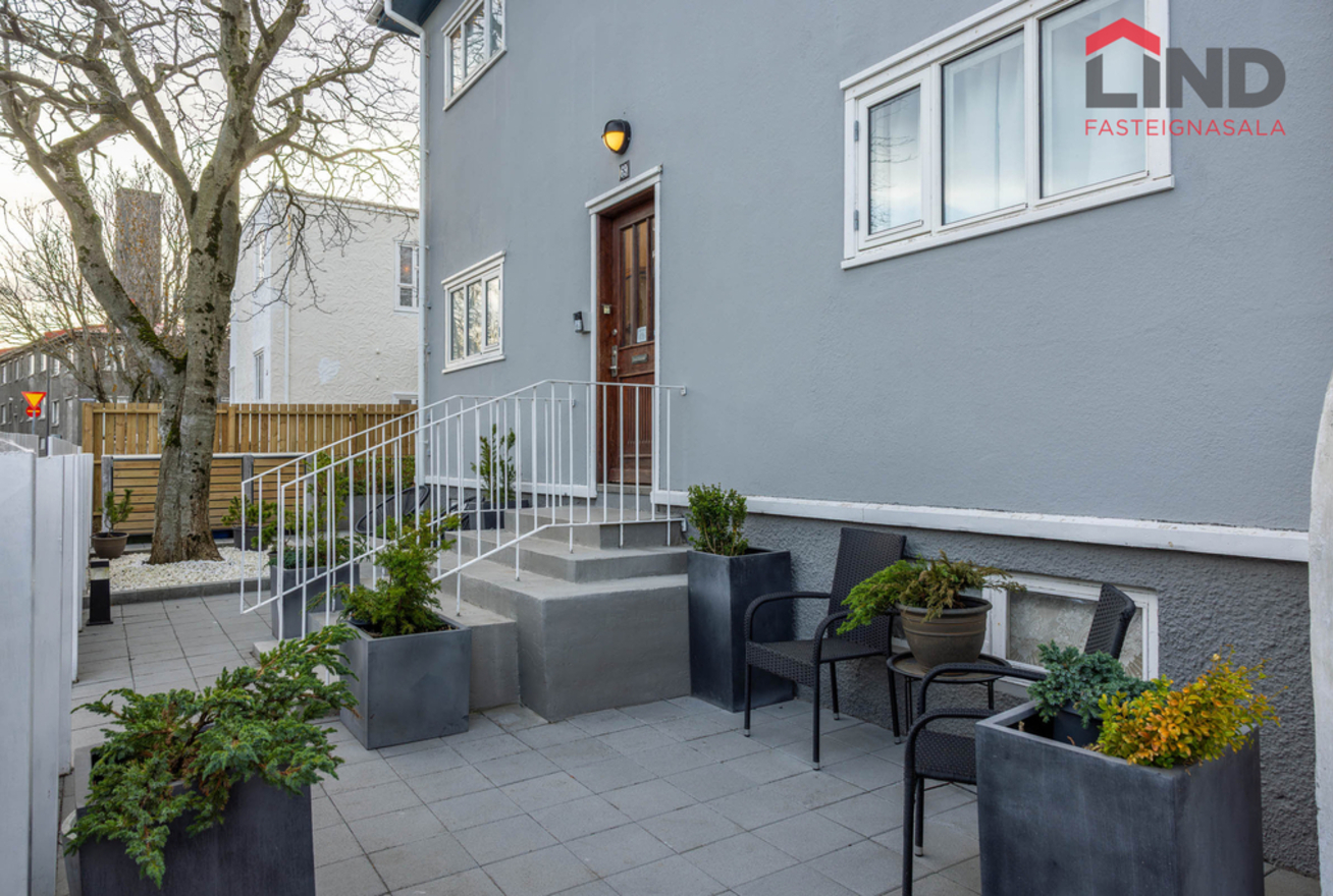 Íbúðin er 62,5 fermetrar á fyrstu hæð í fjórbýlishúsi sem byggt var árið 1938.