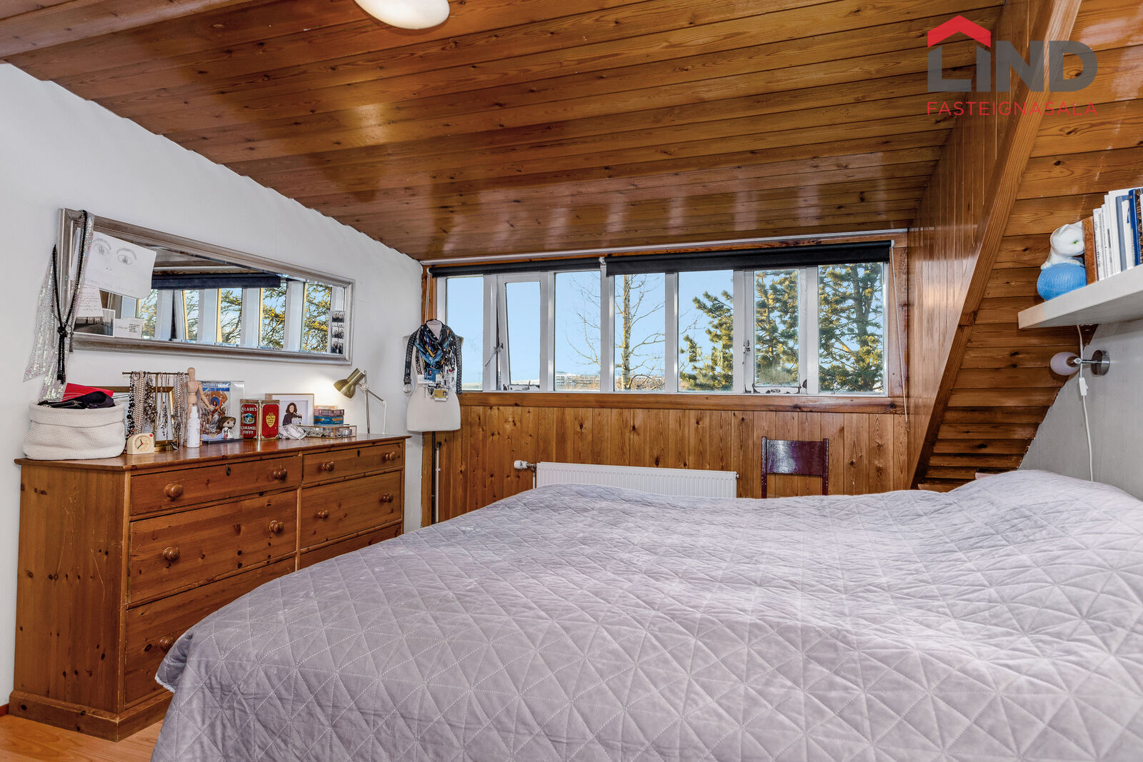 Gengið er upp stiga í herbergjaálmu þar sem eru þrjú svefnherbergi.
